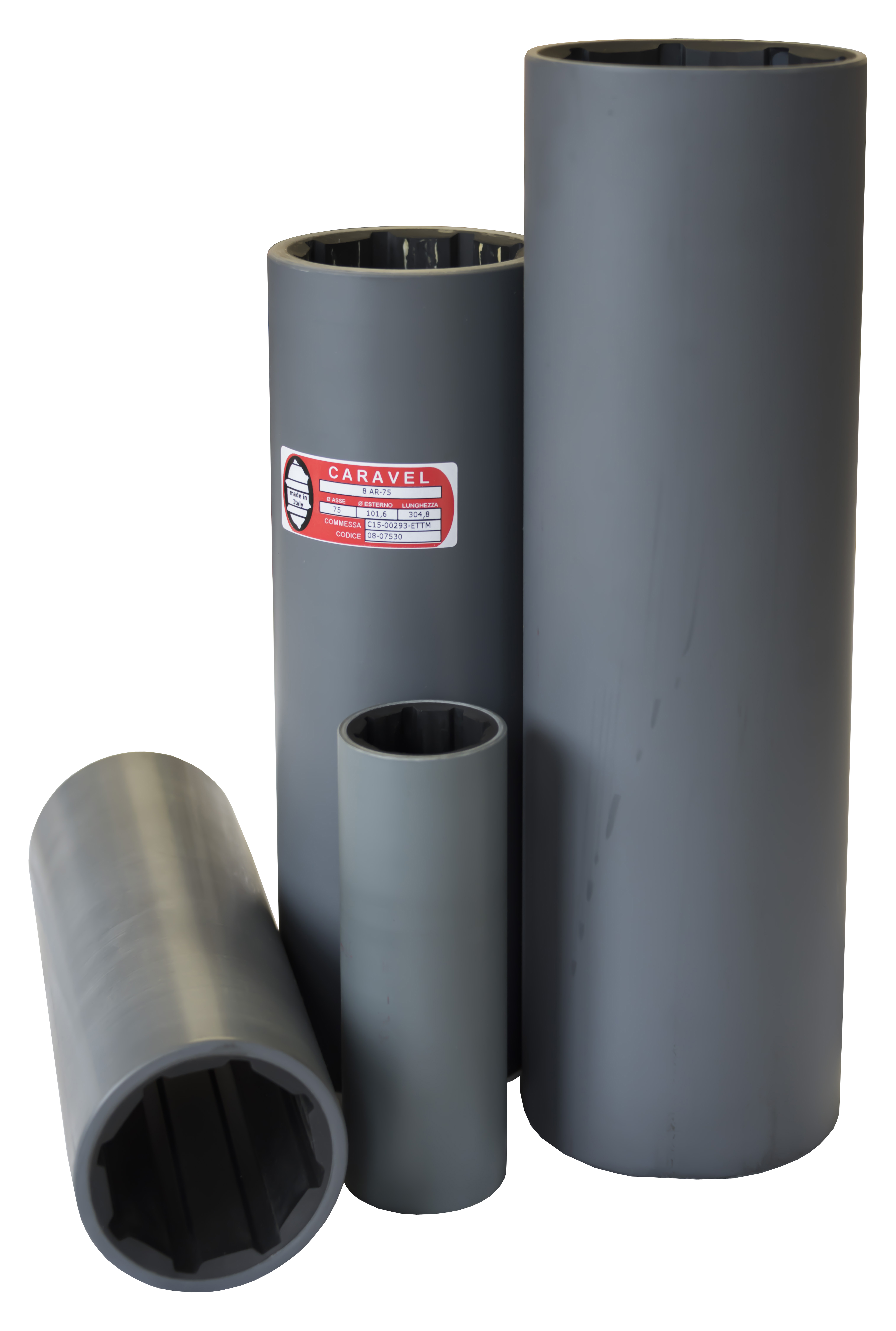 Water lubricated bearings with an outer shell in non-metallic material, namely PVC, and rubber inner: extremely easy to assemble and remove, they are a perfect alternative when there is a need to avoid a connection between copper alloys (brass or bronze) and iron, or metals that are very distant in the electrochemical potential scale. Because of its versatility, PVC is a valid alternative to resins and other plastic materials.